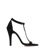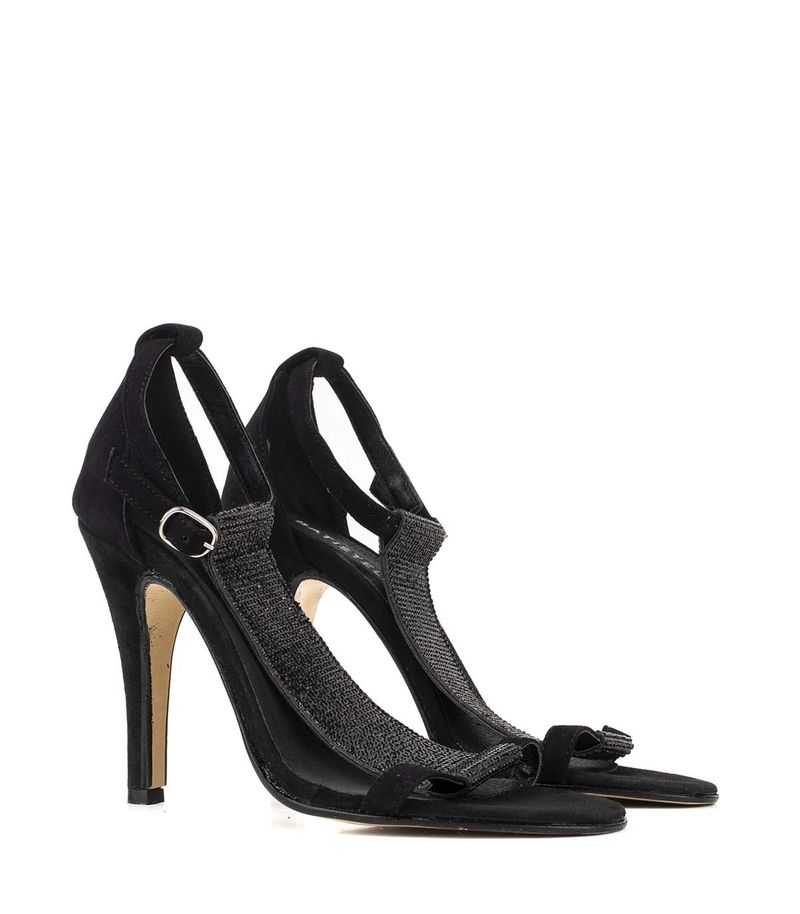 Estas sandalias de fiesta en gamuza se destacan por sus detalles en strass, que añaden un toque de glamour. Con un taco de 11 cm, eleva cualquier look, brindando una silueta elegante. El cierre de hebilla asegura un ajuste perfecto, mientras que la suela proporciona comodidad para disfrutar de la noche. Ideales para ocasiones especiales.