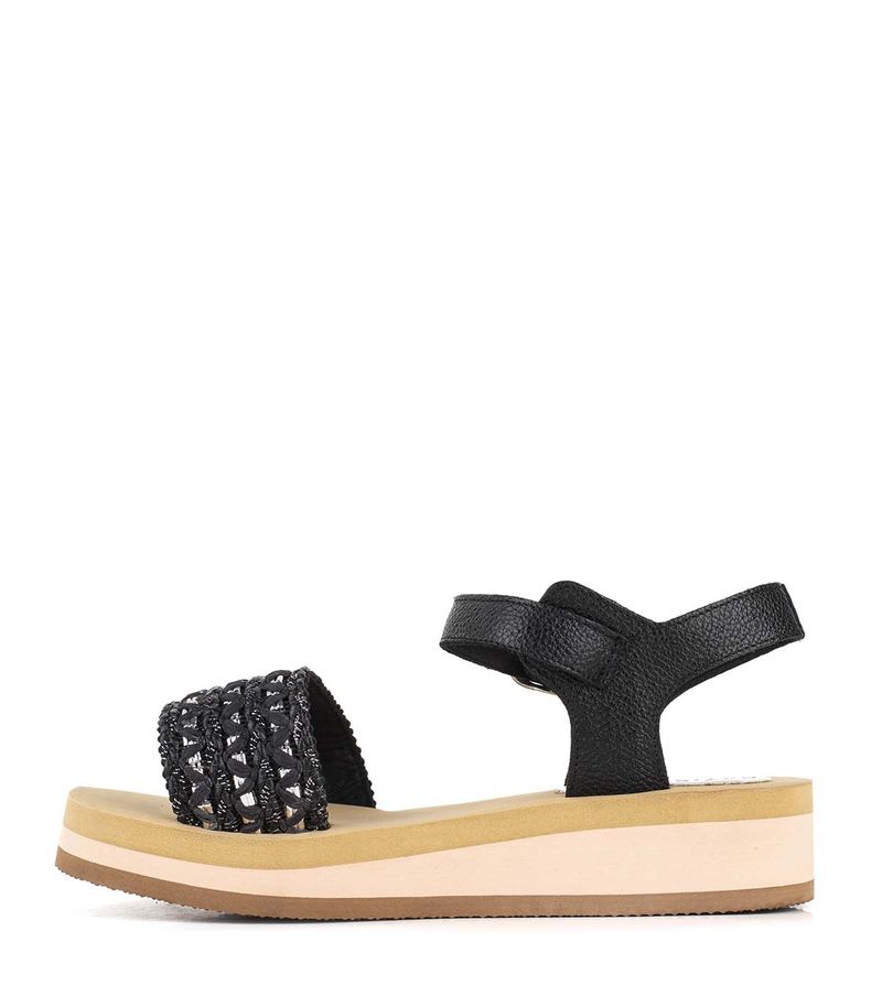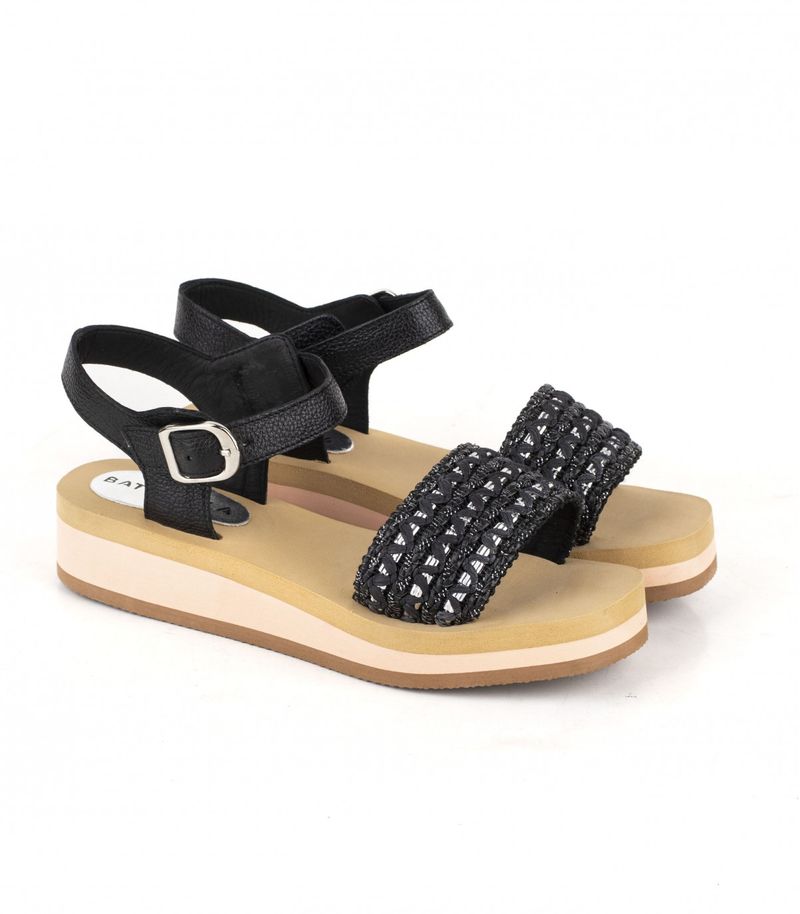 Corresponde al remito: Sandalias bajas de cuero negro, un diseño que combina moda y estilo con detalles de rafia y brillos para un toque sofisticado. Este modelo liviano y versátil es perfecto para complementar cualquier look, ofreciendo comodidad y elegancia. Cuenta con una hebilla ajustable que asegura un calce ideal, convirtiéndolas en el accesorio imprescindible para la mujer moderna