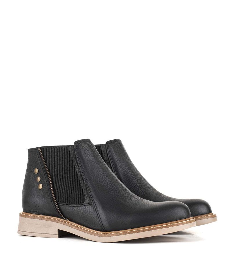 "Bota corta de cuero negro con tachas decorativas, perfecta para un estilo audaz y moderno. Diseñada con materiales de alta calidad, ofrece comodidad y durabilidad. Su suela resistente y diseño versátil la convierten en el complemento ideal para cualquier outfit casual o urbano. ¡Un must-have para tu guardarropa!"