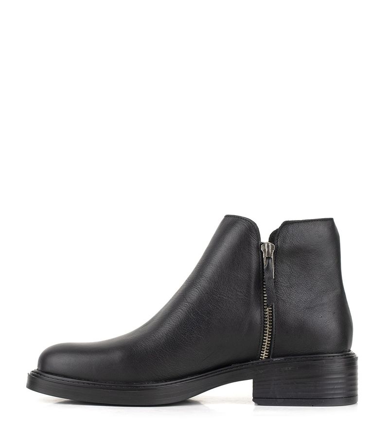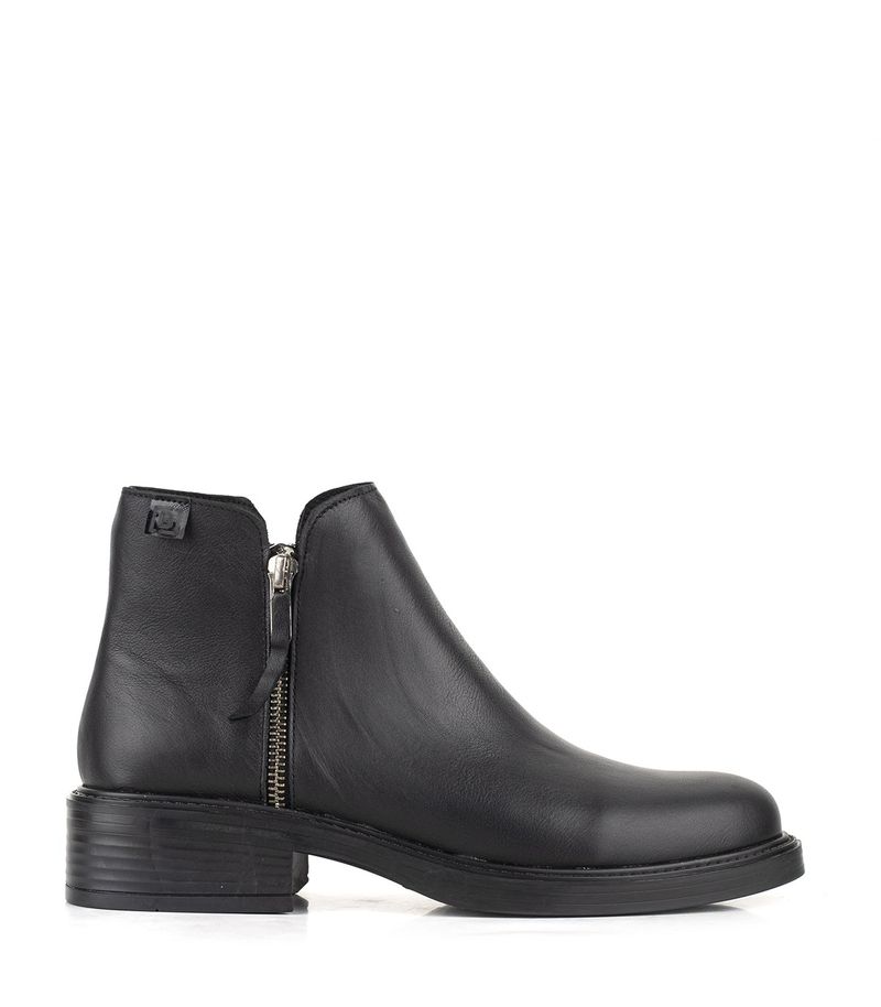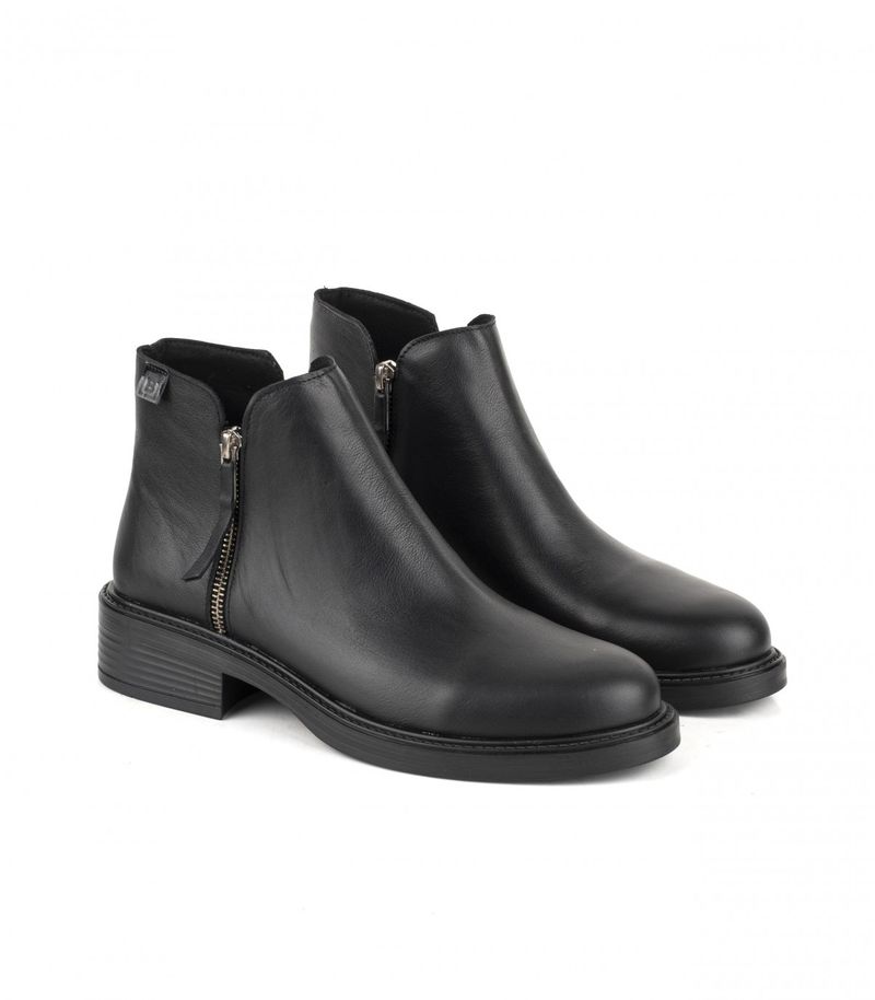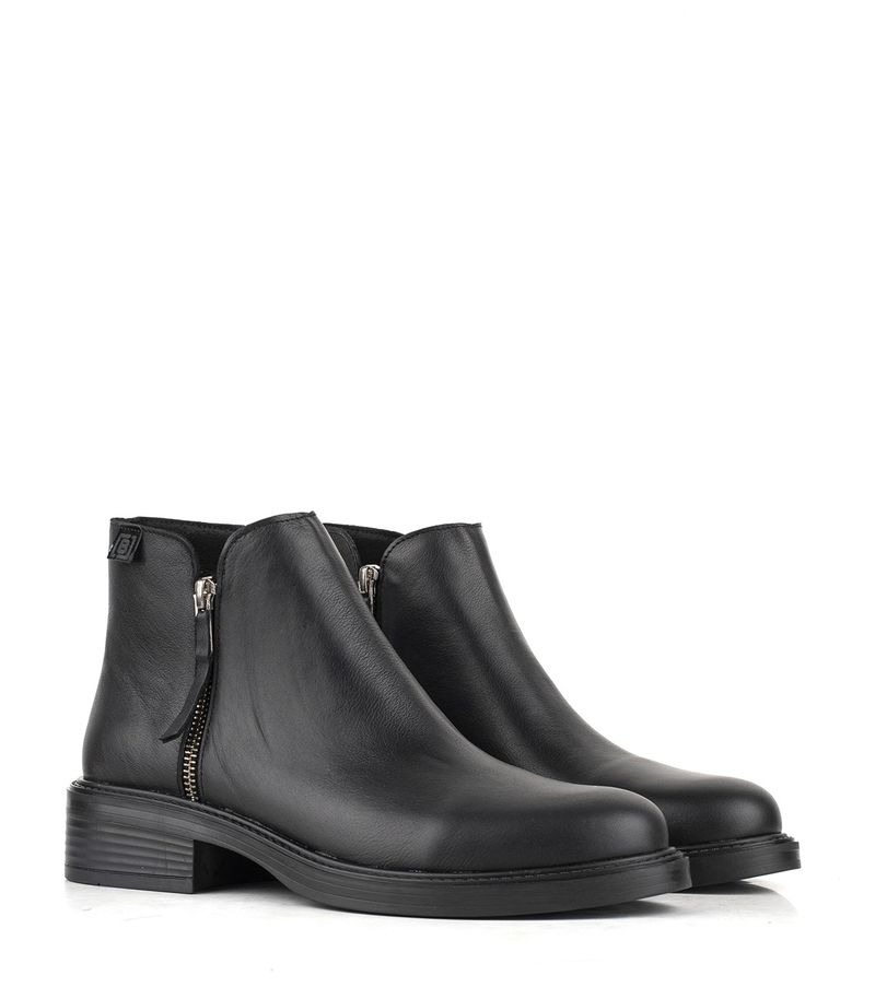 Esta bota corta de cuero negro es la combinación perfecta de comodidad y estilo. Su diseño clásico con doble cierre lateral permite un acceso fácil y un ajuste práctico. La base de goma brinda estabilidad y confort en cada paso, ideal para el uso diario. Perfecta para un look casual o sport, esta bota se adapta a cualquier ocasión con elegancia y funcionalidad.