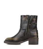 Bota corta de cuero marrón con herraje metálico, que aporta un estilo moderno y audaz. Confeccionada en materiales de calidad, ofrece comodidad, durabilidad y suela antideslizante. Perfecta para un look único y versátil.