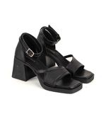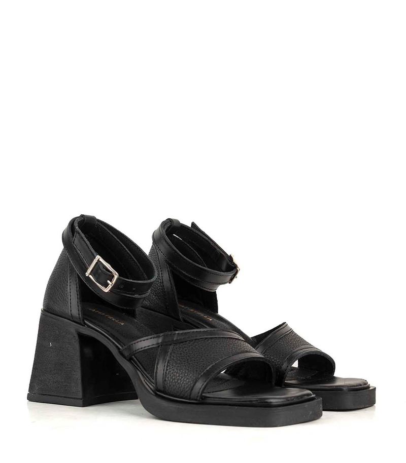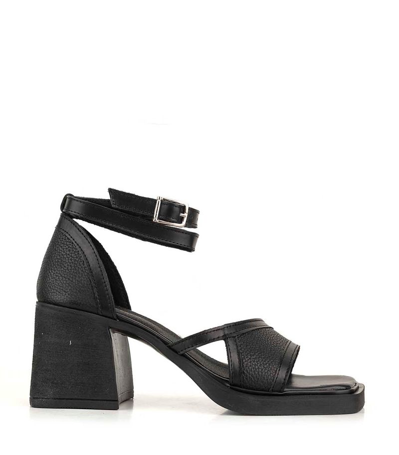 Sandalia de cuero con diseño de tiras cruzadas y pulsera en el tobillo con hebilla ajustable para un calce seguro. Su taco ancho brinda comodidad y estabilidad, mientras que la plantilla acolchada permite usarla por horas sin perder estilo. Perfecta para elevar looks casuales o acompañar conjuntos más elegantes.