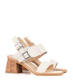 Un diseño versátil y sofisticado para realzar tus looks de temporada. Confeccionada en cuero natural de alta calidad, esta sandalia se distingue por sus dos tiras anchas con hebillas metálicas regulables, que aseguran un calce firme y confortable.