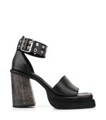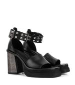 Un diseño con actitud y estilo urbano, ideal para elevar cualquier look de temporada. Confeccionada en cuero natural, esta sandalia destaca por su pulsera al tobillo con ojales metálicos y hebilla ajustable, que aportan un aire moderno y sofisticado.