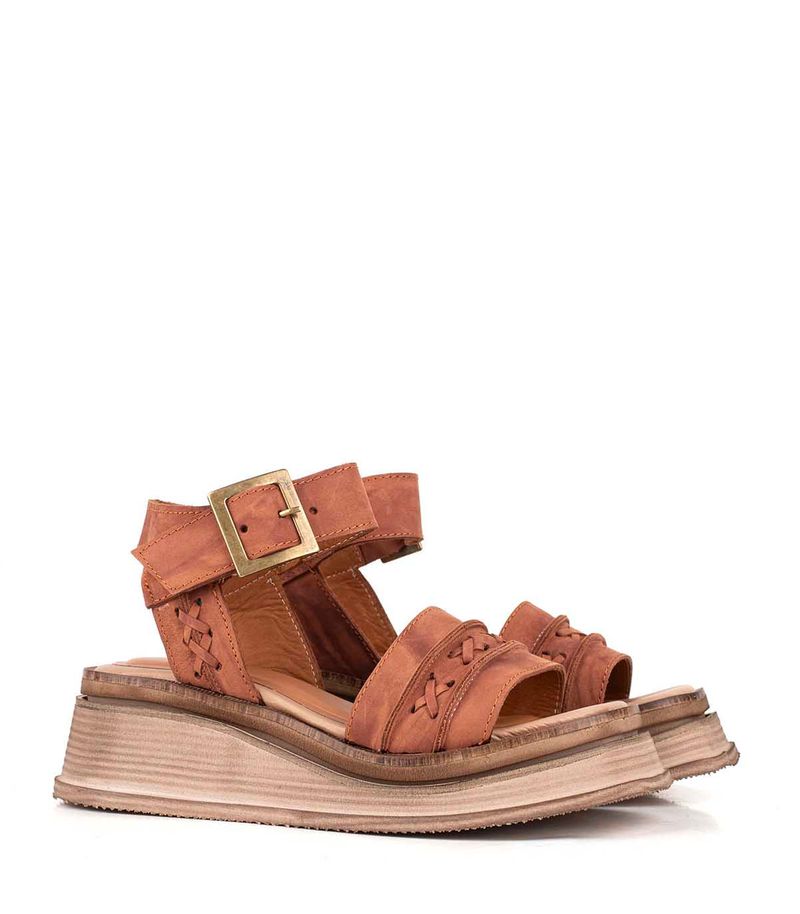 Lucí estilo y comodidad con esta sandalia de cuero para mujer con plataforma, diseñada con detalles de cruces en el mismo material que realzan su confección artesanal y su toque distintivo.