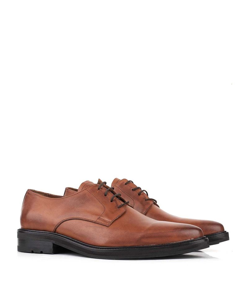 Zapato de vestir acordonado en cuero marrón, forrado en cuero para mayor comodidad y con base de goma antideslizante. Un estilo clásico y elegante, ideal para cualquier ocasión formal.
