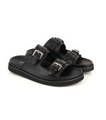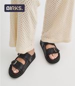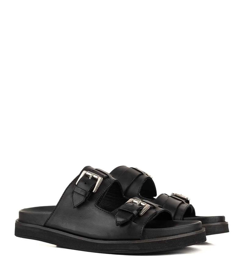 Birks de cuero estilo slip-on con dos tiras anchas y hebillas metálicas ajustables para un calce personalizado. Su plantilla acolchada y suela liviana garantizan comodidad en cada paso, mientras que el diseño minimalista aporta un toque moderno y versátil para combinar con distintos looks casuales.