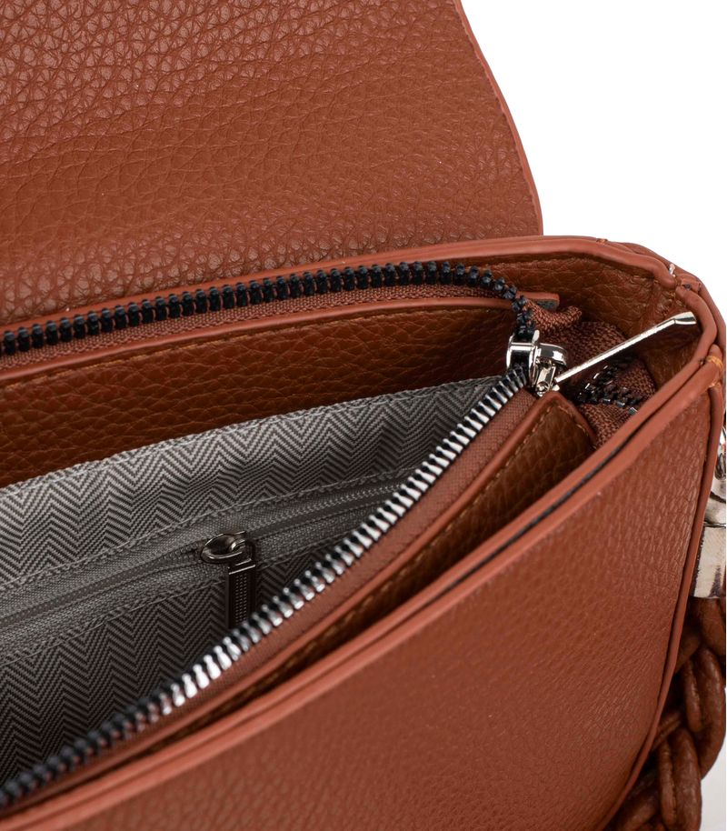 La Cartera simil cuero con manija trenzada destaca por su diseño elegante y versátil. Confeccionada en cuero de primera calidad, combina resistencia y estilo en un accesorio único. Su manija trenzada aporta un detalle artesanal, mientras que el cierre con broche metálico asegura practicidad y seguridad.