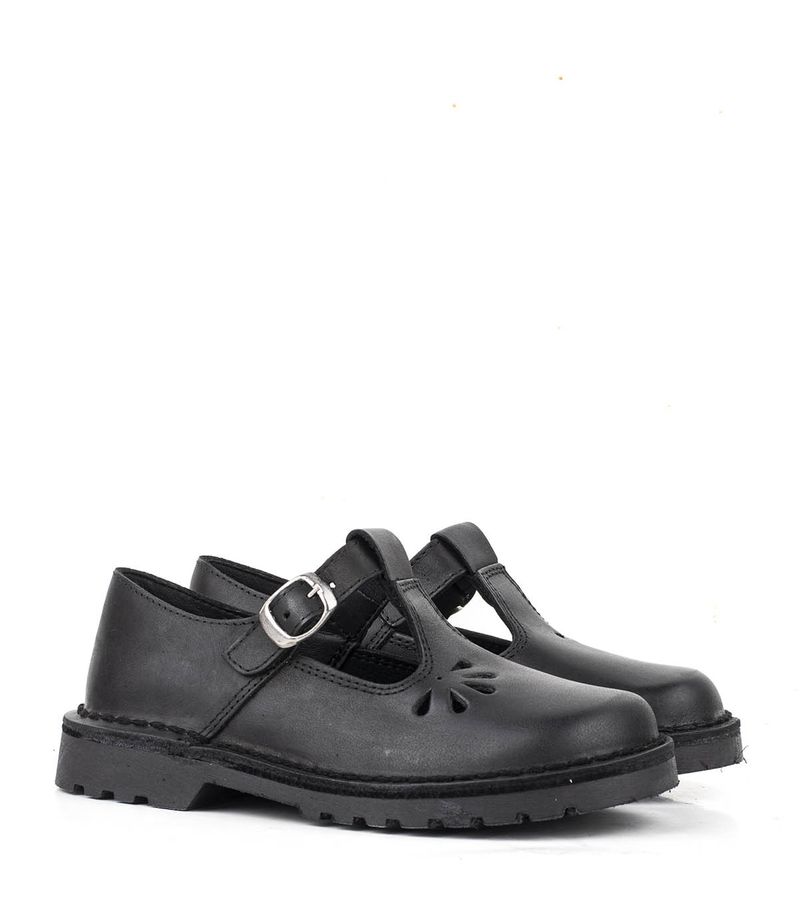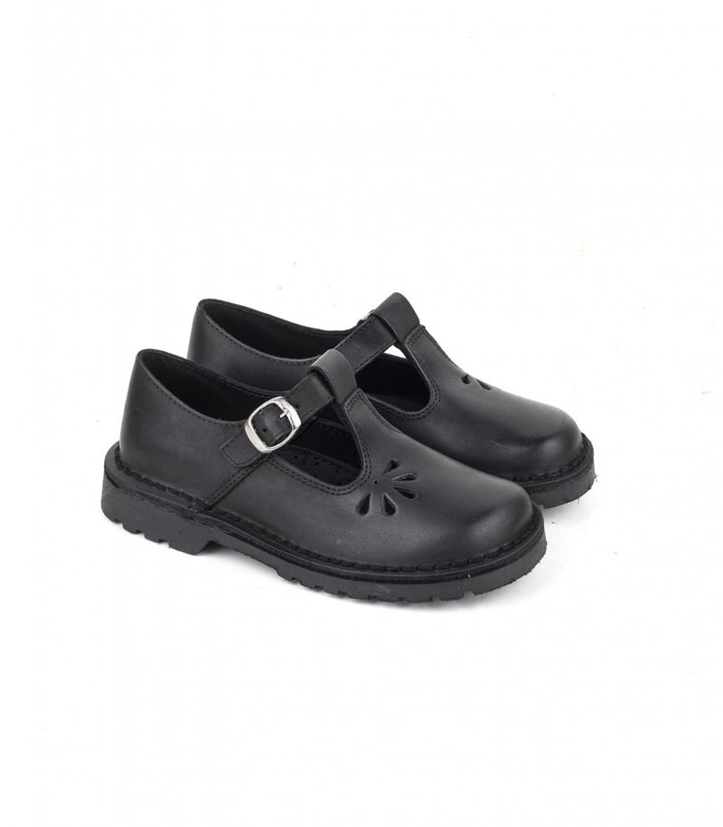 Guillerminas colegiales de nena. Estos zapatos está confeccionados en cuero. Tienen una tira regulable con hebilla. Están forrados en símil cuero, lo que hace que sean unos zapatos escolares mucho más durable y de mejor calidad para el uso diario de los niños. La suela es de goma, lo que le da flexibilidad y comodidad para disfrutar tanto las clases como los recreos!El diseño clásico combina detalles de picado en la capellada. No te pierdas este modelo!