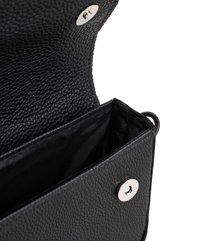 Elegante y funcional, esta mini bandolera es ideal para llevar lo esencial con estilo. Confeccionada en símil cuero de alta calidad y forrada en tela, ofrece un acceso seguro mediante broche imantado. Su formato compacto la hace cómoda y práctica para el uso diario. Cuenta con una correa ajustable que se adapta a tu preferencia, brindando comodidad sin perder sofisticación. Versátil y moderna, es el complemento perfecto para elevar tanto looks casuales como más formales.