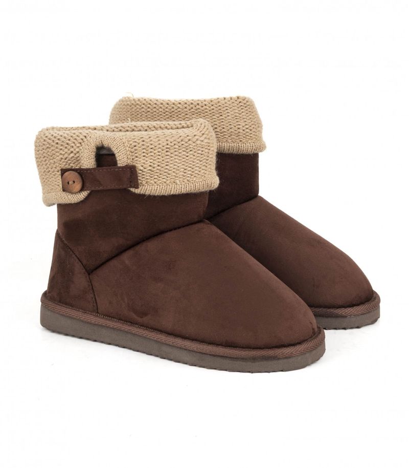 Disfrutá del máximo confort este invierno con estas pantubotas cálidas y suaves. Están confeccionadas en gamuza sintética con un forro interior tipo peluche que abriga y brinda una sensación ultra confortable. El diseño incorpora un detalle decorativo de tejido con botón lateral que le da un toque moderno y canchero. Livianas y fáciles de calzar, son ideales para usar en casa o para salidas breves en días fríos.