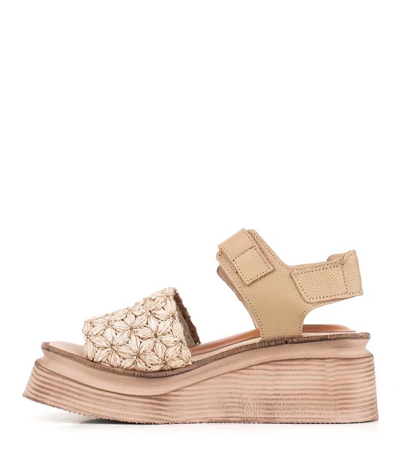 Sandalia de cuero con plataforma, diseñada con capellada tejida que aporta un detalle único y artesanal. Incluye hebilla de ajuste en el tobillo para mayor sujeción y base de diseño liviano que asegura comodidad en cada paso. Un modelo que combina estilo y calidad, ideal para quienes buscan un calzado versátil y duradero, característico de Batistella.