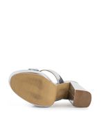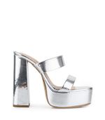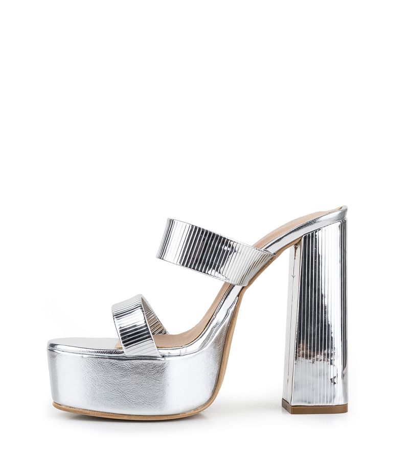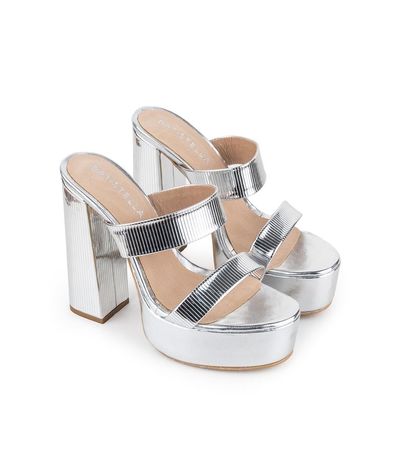Sandalia de fiesta confeccionado en material metalizado con doble tira ancha y base con plataforma. Su taco alto y ancho aporta estabilidad y estilo, ideal para acompañar looks nocturnos o de eventos especiales. Una opción moderna y elegante que combina calidad, confort y diseño distintivo, reflejando la esencia de Batistella.