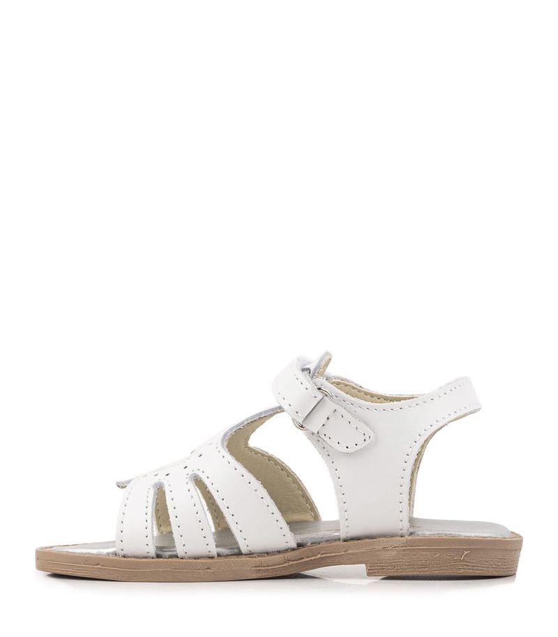 Sandalia infantil de cuero, con detalle calado en forma de corazón. Ajuste práctico con abrojo y suela flexible para mayor comodidad.