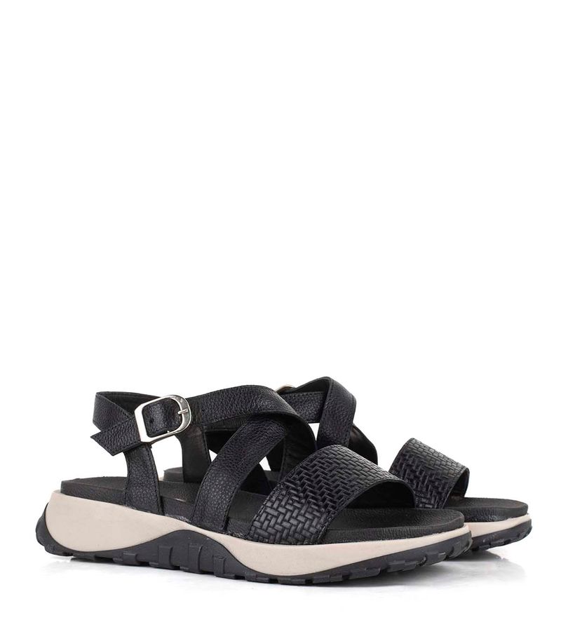 Sandalias de cuero con diseño cómodo y funcional. Presentan tiras cruzadas que envuelven el empeine y pulsera regulable al tobillo con hebilla metálica para un calce seguro. Base deportiva liviana con suela dentada que brinda estabilidad y confort, ideales para el uso diario.