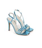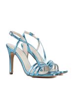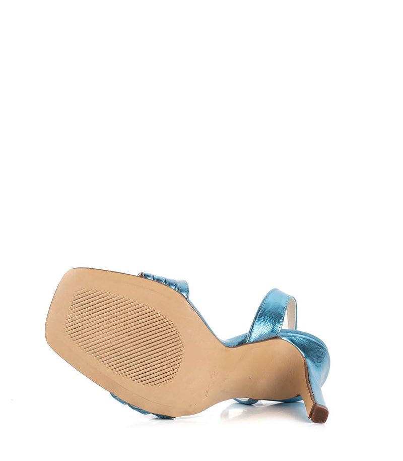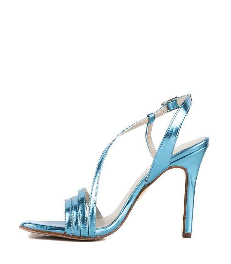 Sandalias de fiesta metalizadas confeccionadas, con delicadas tiras finas en el empeine y tira regulable al talón con hebilla metálica. Presentan taco alto y estilizado que realza la silueta sin perder estabilidad. Un diseño sofisticado y femenino, ideal para eventos, celebraciones y looks nocturnos.
