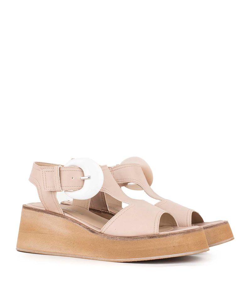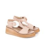 Sandalias de simil cuero con diseño moderno y confortable. Presentan capellada amplia con recortes suaves y pulsera al tobillo con hebilla decorativa que brinda buena sujeción. Plataforma corrida liviana que aporta altura sin resignar comodidad, ideal para looks urbanos y casuales.