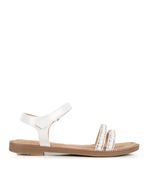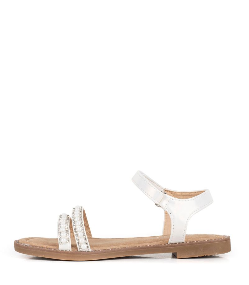 Sandalias simil con dos tiras frontales adornadas con perlas y velcro regulable en el tobillo para mayor comodidad. Su base es liviana, flexible y pensada para acompañar cada movimiento. Una opción delicada, práctica y súper cómoda para usar todos los días.