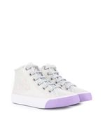 Zapatillas de tela con acabado glitter y cordones plateados. Poseen cierre lateral para facilitar el calce y suela de goma antideslizante. Un modelo divertido y cómodo, ideal para sumar un toque de brillo a los looks de todos los días. Calidad, confort y diseño único de Batistella.