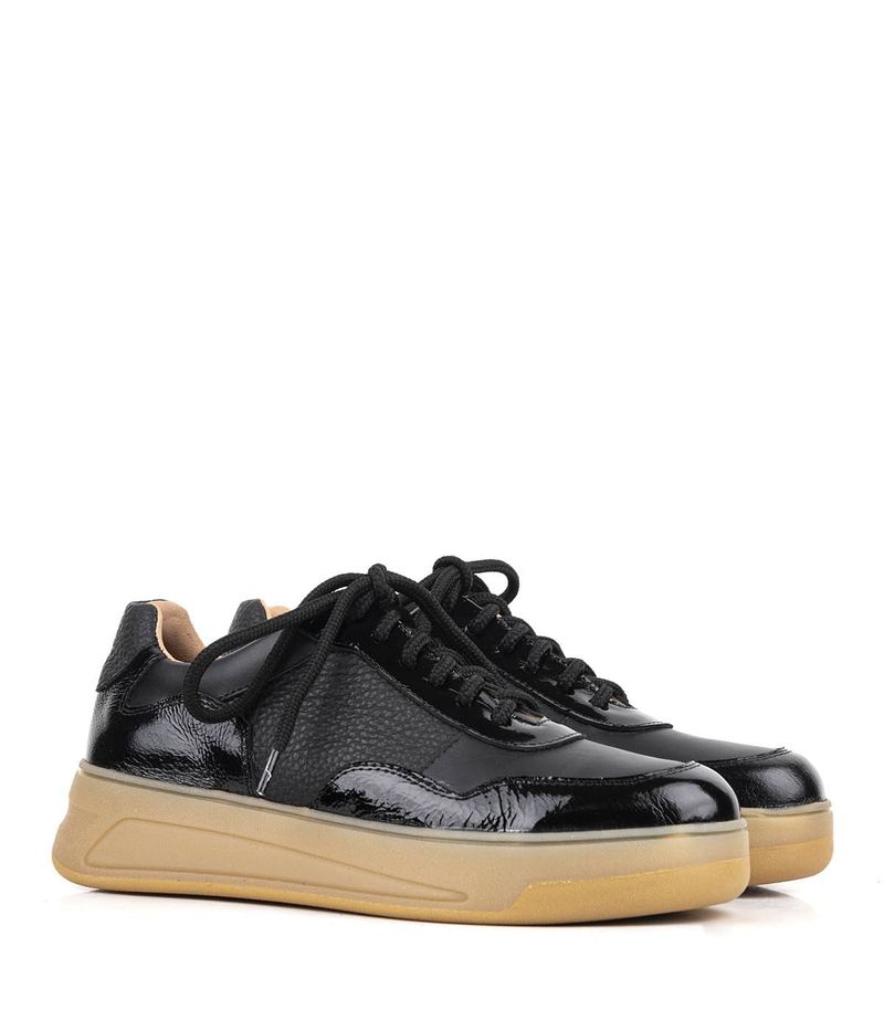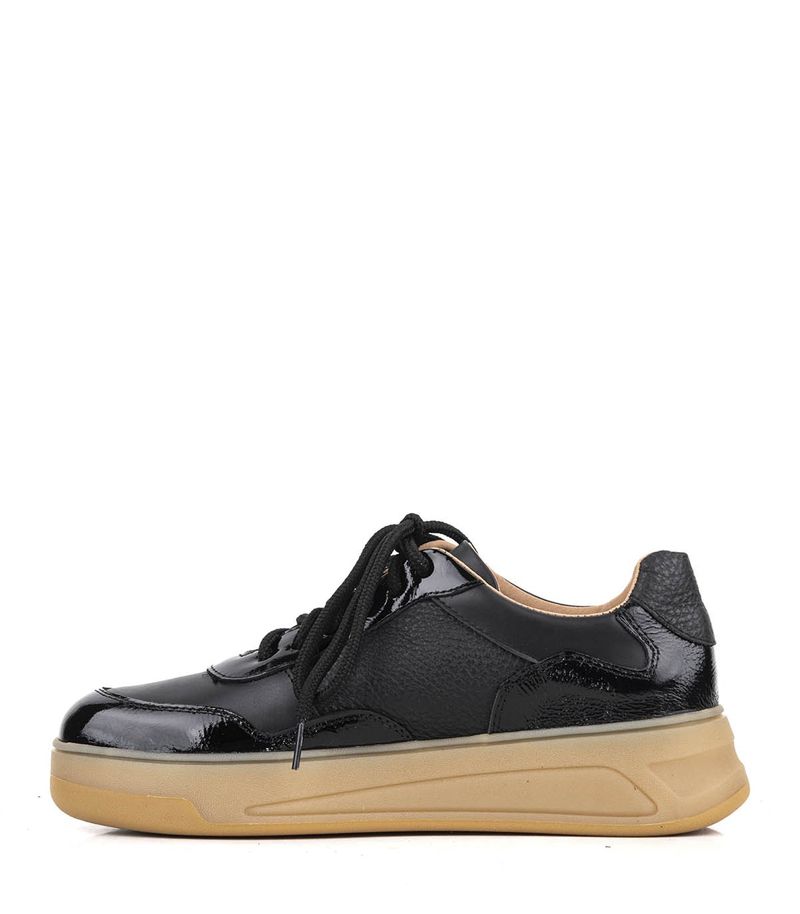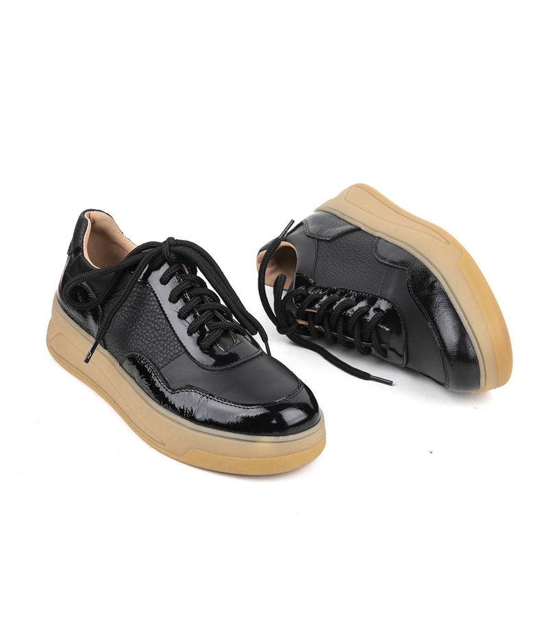 Para las amantes del estilo street style, este modelo es el ideal. Las zapas están confeccionadas en cuero y forradas en símil cuero. La base presenta un diseño novedoso que combina goma en beige. El detalle del charol le da un toque de identidad único!