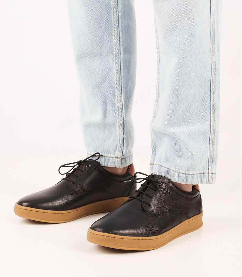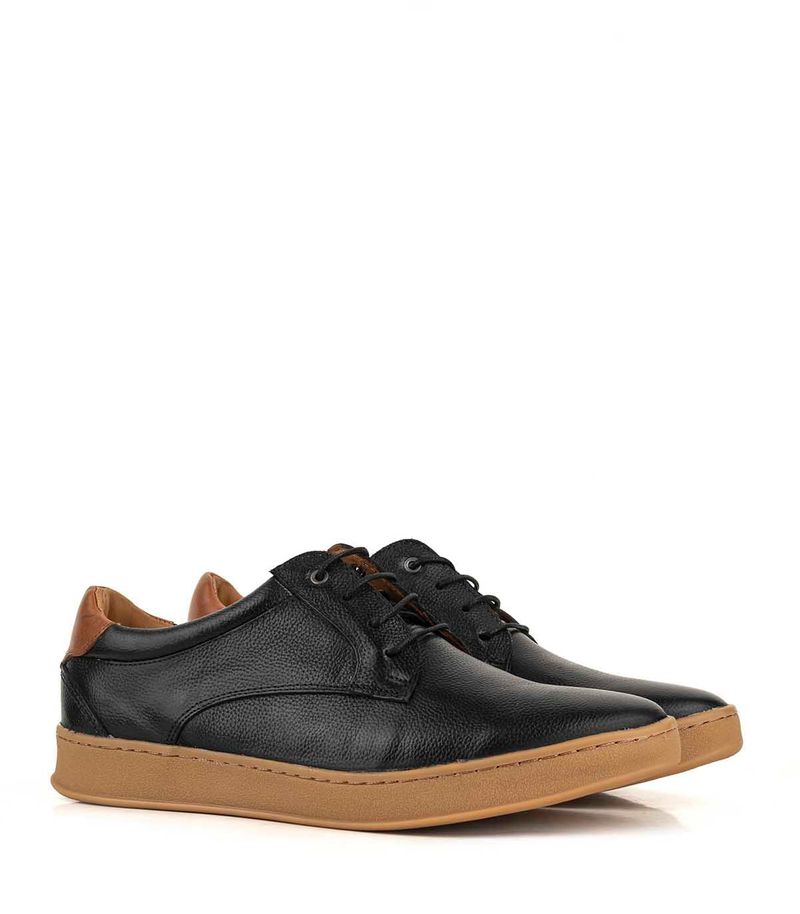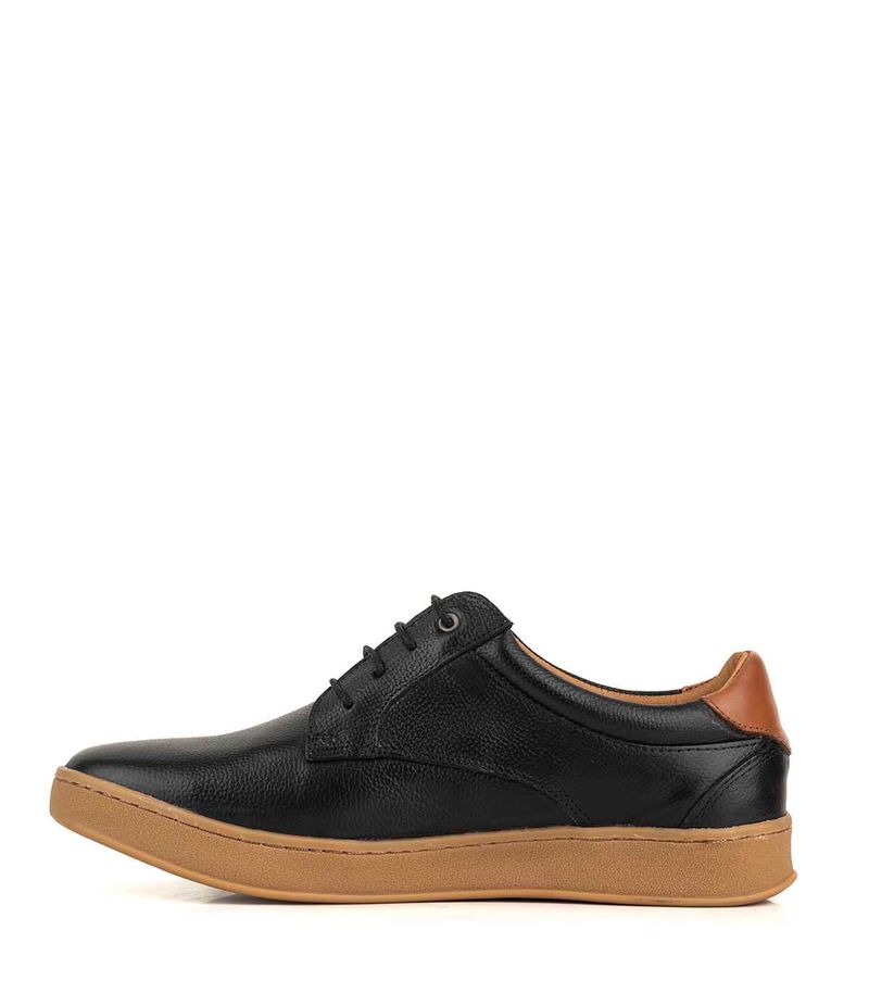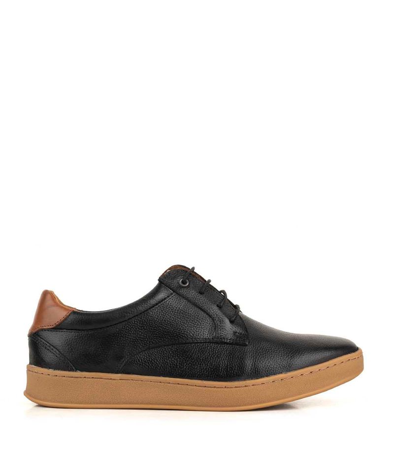 Zapato de cuero con diseño urbano que combina estilo y confort. Presenta acabado texturado, cordones para un ajuste seguro y cuello acolchado para mayor comodidad. Su suela de goma antideslizante ofrece buena tracción, ideal para el uso diario con un toque moderno y versátil.