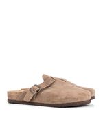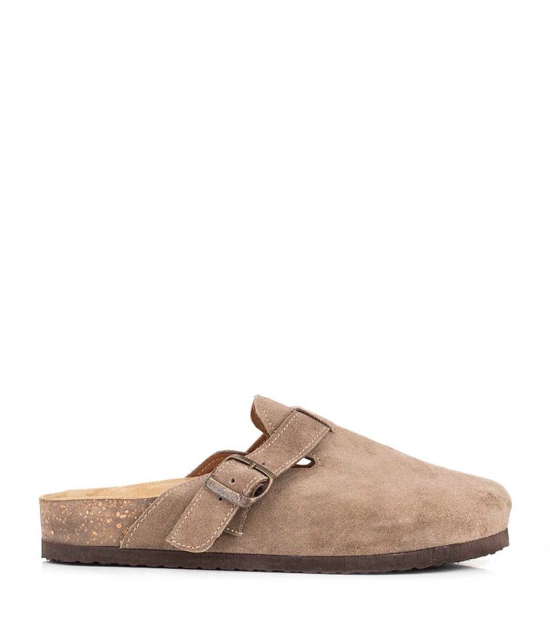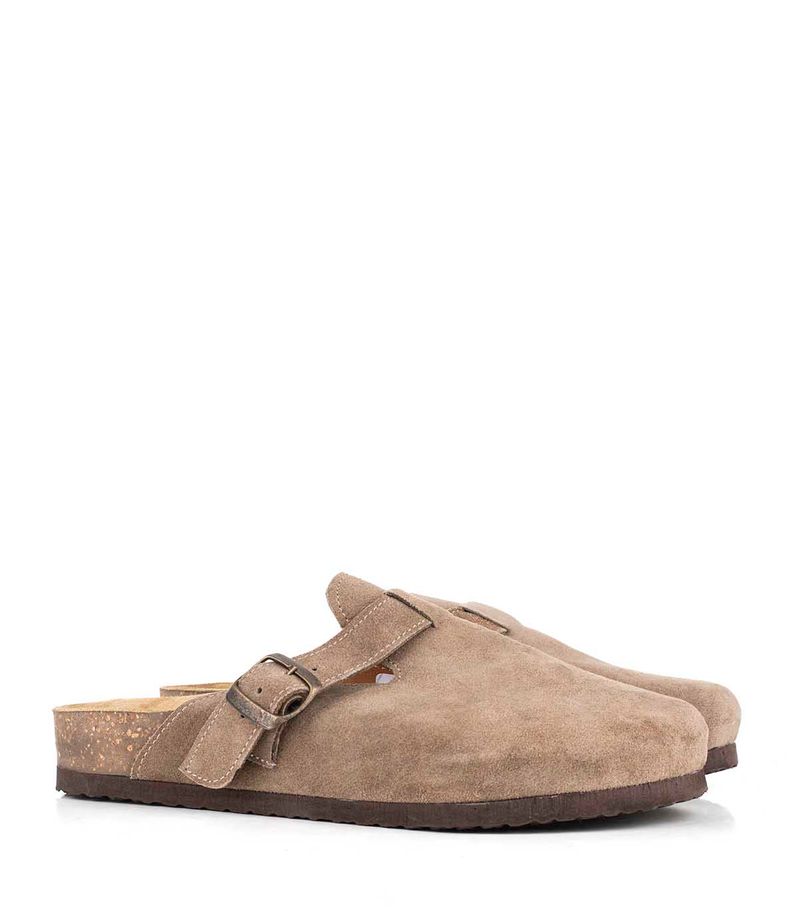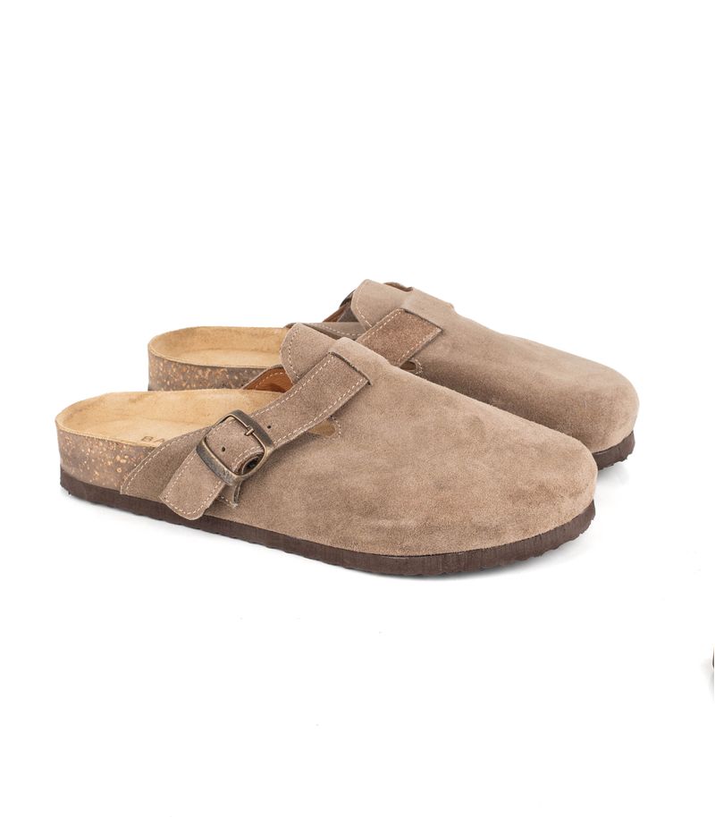 Zuecos confeccionados en gamuza suave con punta cerrada y tira regulable con hebilla lateral. Base anatómica estilo corcho que brinda comodidad y un calce firme para uso diario. Un diseño liviano, versátil y perfecto para acompañarte en cualquier temporada.